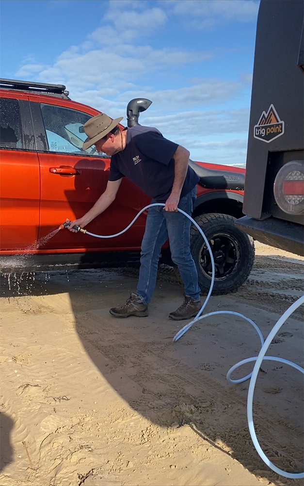 I suggested we wash it all away using freshwater from the tanks under our Trigpoint canopy, and in no time, the high-pressure pump washed away any evidence that the event had ever happened.