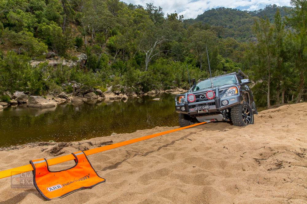 Attach recovery gear to your vehicle before you head into a site which you are concerned about. It’s so much easier to attach a strap to a vehicle before its under water or deep in mud. Make sure this strap is well secured and will not become tangled in the vehicle. Either feed it over the bonnet and into the cabin through the window, or cable tie it to the top of the bull bar for someone to grab quickly.