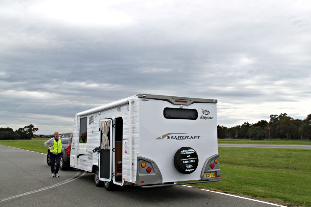 Jayco Caravanland in Perth delivered the caravan to the RAC WA DTEC (Driver, Training, Education and Corporate) centre first thing on the Monday morning, and I was there to receive it. The delivery guy hitched it up to my car ⦠which was just as well, as I didnāt know how to do it.