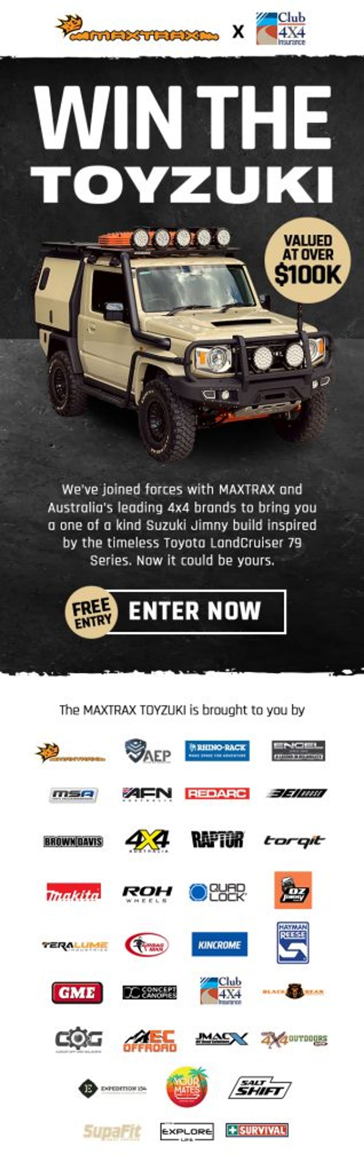 Toyzuki giveaway T&Cs here. The winner will be the first valid entry drawn on 20 August 2023 between 3pm and 4pm AEST at the 2023 National 4x4 Outdoors Show (Melbourne), located at the Melbourne Showgrounds, Epsom Rd, Ascot Vale VIC 3032, Australia.