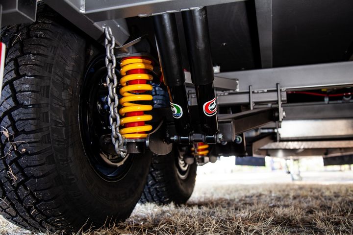 Both systems are rated to 3.5-tons and are independent, heavy-duty set-ups: Alpha Components X-Treme or Tuff Ride DRS, with both upgradeable to airbags, and both utilise twin shocks. Twin spare wheels out back compliment the 265/75/R16 all-terrain tyres used. A Camec Sway Control (CSC) system is another standard feature.