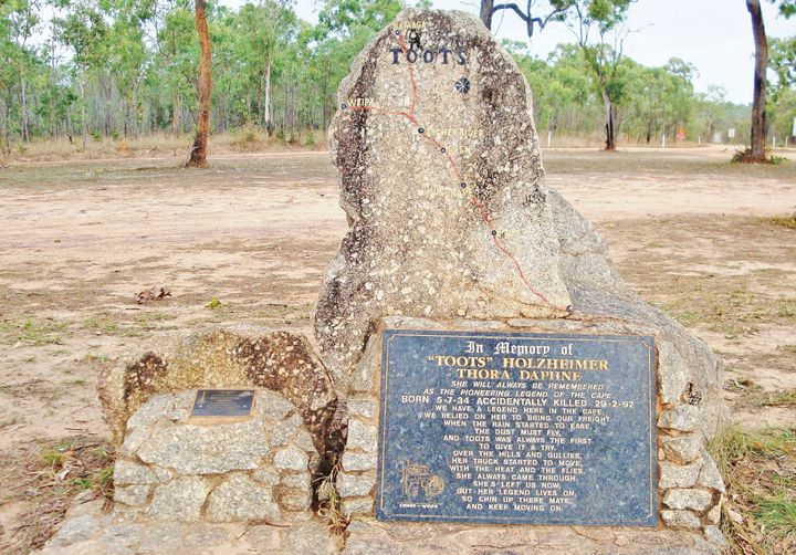 Out the front of the roadhouse you’ll notice a memorial plaque, this is for a pioneering woman who was a long-time truck driver on the Peninsula, Toots Holzheimer.
