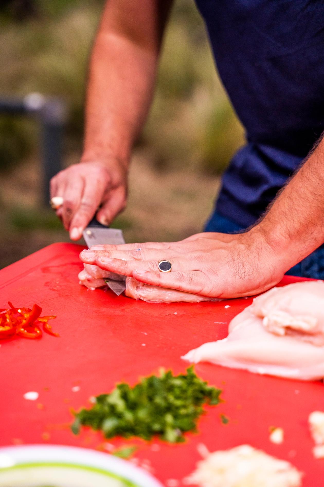 - Prepare the aromatic base by combining the red chili, crushed garlic, and finely chopped lemongrass.