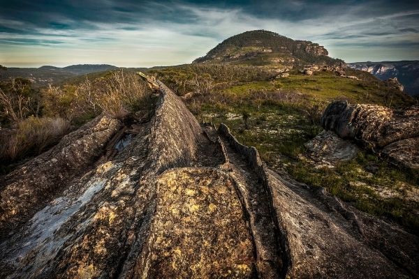 Turn into Tablelands Road at Wentworth Falls and you will soon find yourself on an unsealed road that snakes more than 20km to McMahons Lookout. There you will be rewarded with spectacular views over the southern Blue Mountains and the backwaters of Lake Burragorang. The road sits on top of Kings Tableland, an ancient sandstone ridge that was a superhighway for the Gundungurra people travelling between the Burragorang and lower Coxs valleys to the ridge tops of the upper Blue Mountains. On Kings Tableland you can visit tool sharpening grooves and a rock shelter where the oldest known Aboriginal occupation of the mountains has been dated back 22,000 years. For the white settlers of the lower Coxs River, whose farms are now drowned by Lake Burragorang, Kings Tableland was also their access to civilisation. To get their pigs to market in Sydney they would walk them along the ridge to the railway station at Wentworth Falls, enticed by cobs of corn laid out in front of them. From Kings Tableland you can branch off to Ingar swimming hole and camp ground, the mighty Wentworth Falls, awesome downhill mountain biking on the Andersons fire trail, bushwalking to the Kedumba River and Mount Solitary via precipitous Kedumba Pass, or take in a golden sunset over the Jamison Valley from Lincolns Rock, named after the Australian mountaineer Lincoln Hall of Everest fame, who lived nearby.