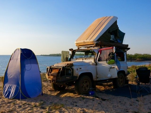 Camping on the beach at Honeymoon Bay, Kalumburu.