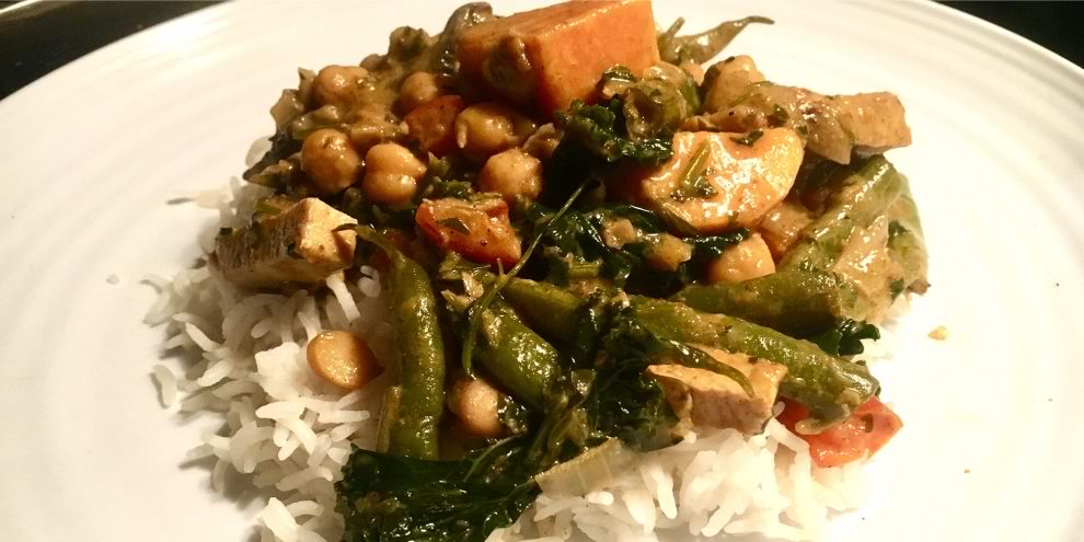 - Simmer uncovered until sauce thickens and sweet potato softens, roughly 15 mins – though the longer the curry has to sit and cook, the better it tastes!