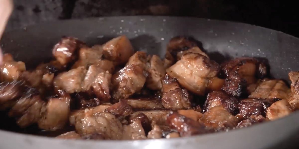 Prepare your Pork Belly by cutting into bite-sized pieces