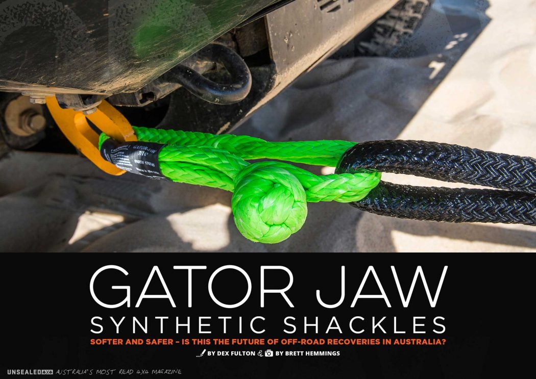 So when American company Bubba Rope wanted to send us out some of their award-winning Gator Jaw soft shackles, we were immediately interested in seeing how they work compared to the tried and true 4.5T rated bow shackles in our recovery kit. First impressions were a little off-putting. “This thing’s going to snap like a postal worker – it weighs less than a helium-filled balloon.”