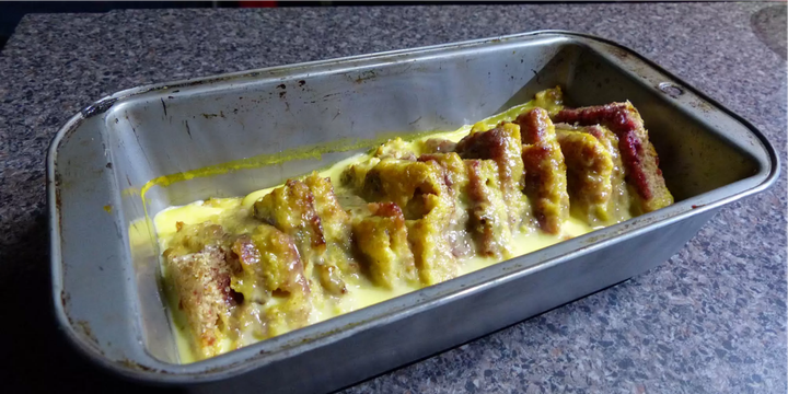 - Evenly pour custard mixture over bread.