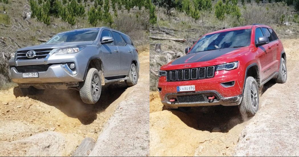 These two four-wheel drives are both insanely capable, but in very different ways. The Fortuner is simpler, more of a point-and-shoot style four-wheel drive, which is fun for someone experienced and straightforward for someone new to four-wheel driving. The Jeep is much more advanced – with multi-terrain modes and all sorts of electro-wizardry that tricks the vehicle into eating hard terrain for breakfast. But the suspension is so rigid it not only lifts wheels like a skirt in the breeze, it certainly isn’t the most comfortable vehicle to drive over corrugations (as it bottoms out on bigger impacts).