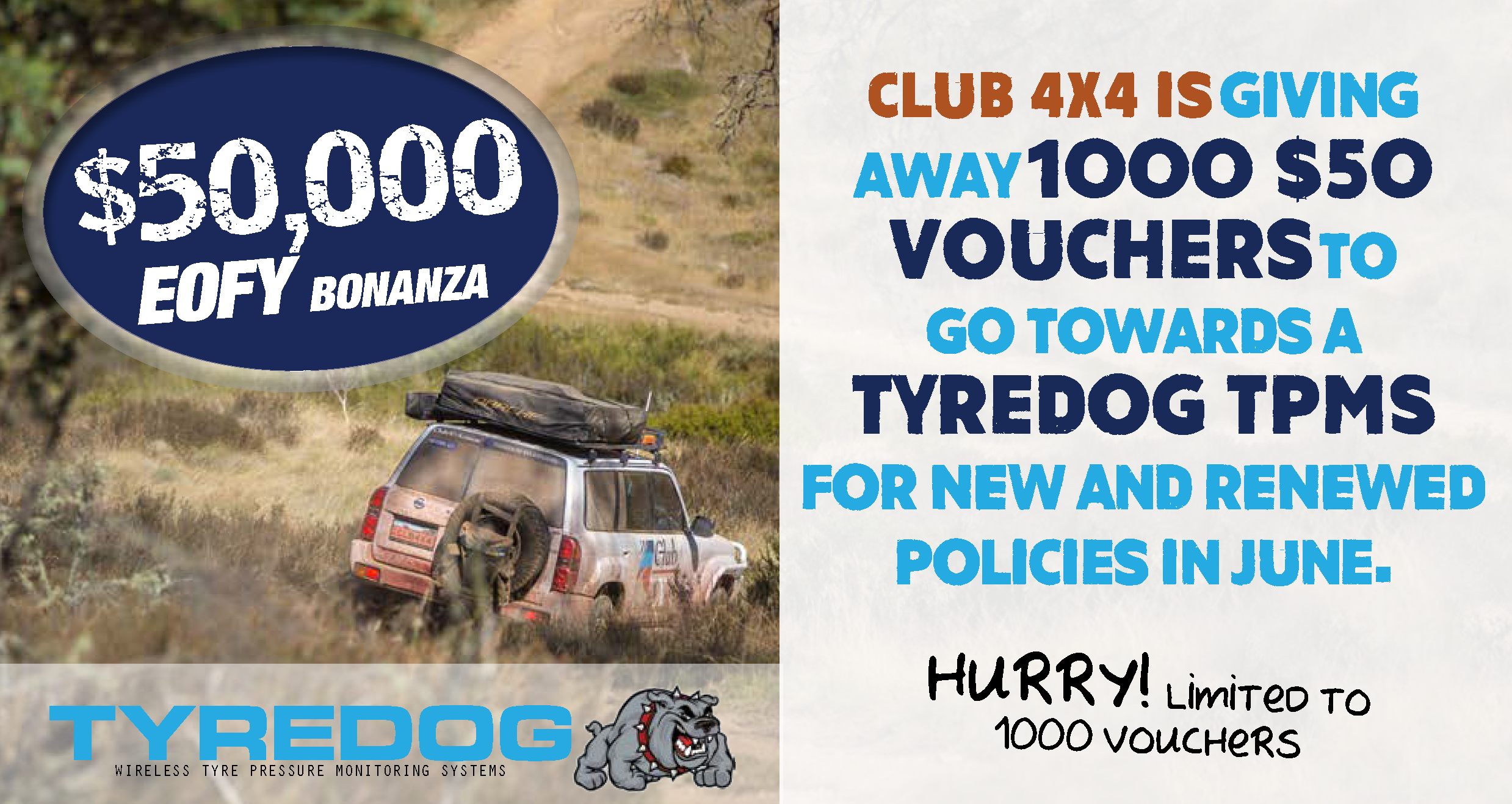 Club 4X4 is giving away 1000 $50 vouchers to go towards a Tyredog TPMS for new and renewed policies in June. Hurry, limited to 1000 vouchers!