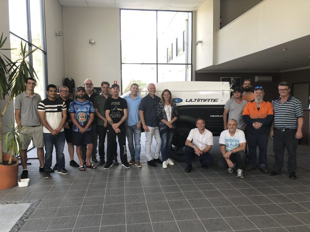 Some of the team at Moruya met with David and Bronwyn (standing together in the centre of the photo) and Eagle Outdoors Group Operations Manager Tim Drysdale (kneeling beside them) earlier this week. The team in Moruya will be led by Jason Stevens (left of David and Bronwyn) who has been with Ultimate Campers for the past 10 years.