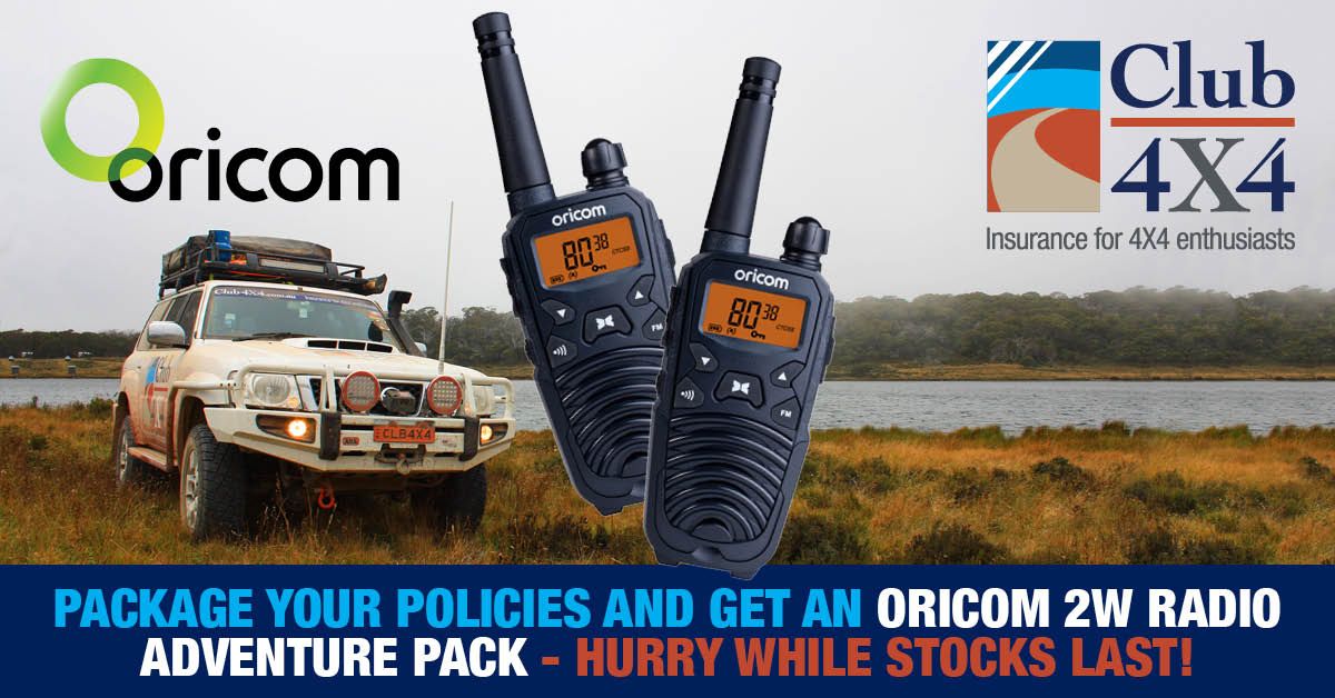 Have you been thinking of switching to Club 4X4? Well the time is here, because if you combine 2 policies with us right now we are giving away an awesome Oricom 2W UHF CB Radio Adventure Pack!
