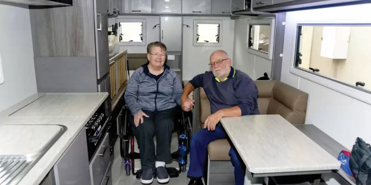 Designing and building a wheelchair accessible caravan takes plenty of thought and work. For example, the roof needs strengthening to handle a lifting hoist. Lifts to access the van need serious work around the chassis, bathrooms need space to allow for showering and the like. It’s a big job from design to drive-away.
