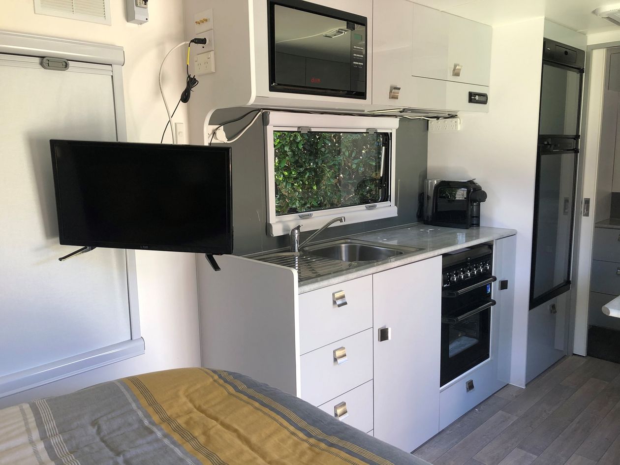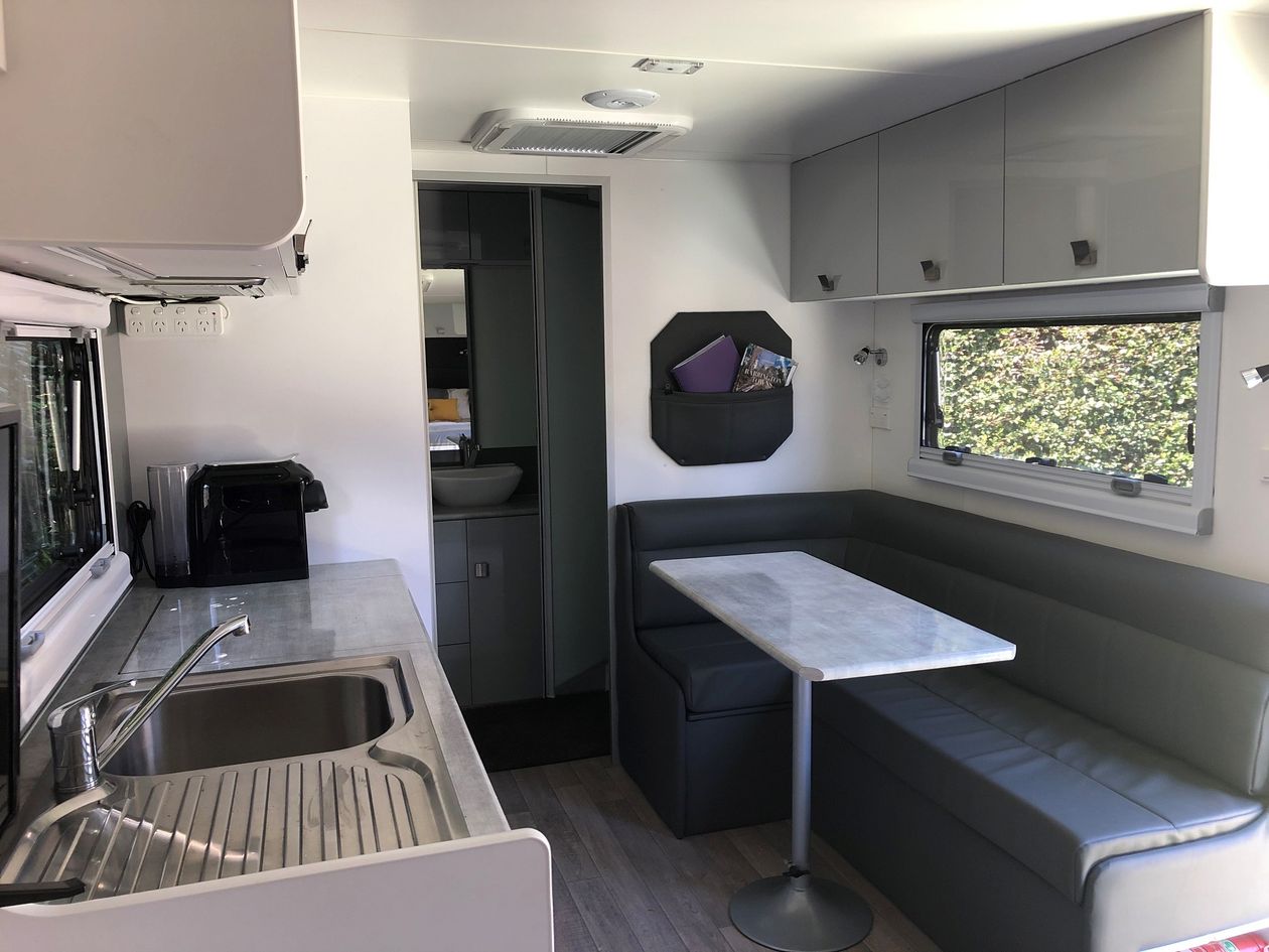 After using the van a few times now, I would have liked to position the two 95-litre water tanks on either side of the axle, to potentially give it less towball weight. The grey water tank, which I believe is not going to get used all that often, could be situated further back as it will be emptied at the earliest opportunity and would not impose its weight on the rear of the van. Also, once those water tanks are both empty in front of the axle, I don’t believe it tows as well. If you have been off the grid, you’d probably need to find somewhere to fill up the tanks so as to provide better towing stability. Now I’m not an engineer but it’s just my opinion of my experiences so far.